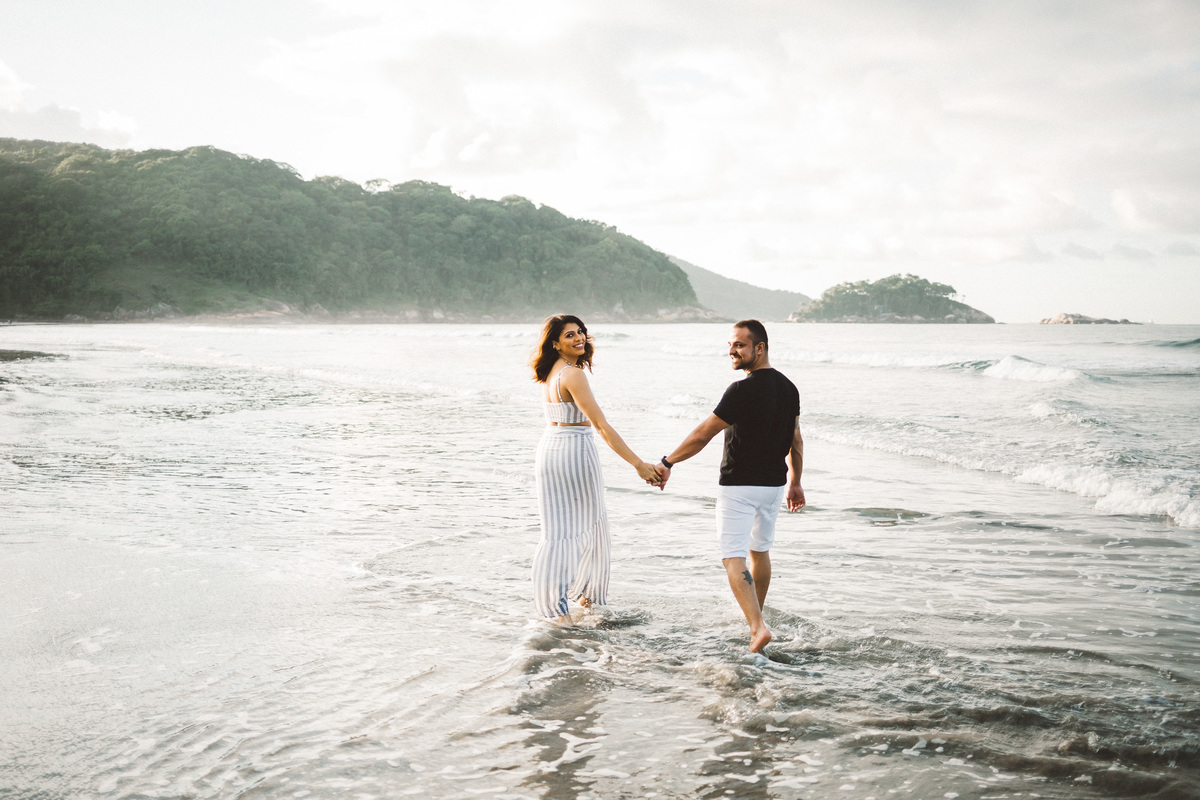 Ensaio pré casamento na praia do Guaiuba, Guarujá - SP