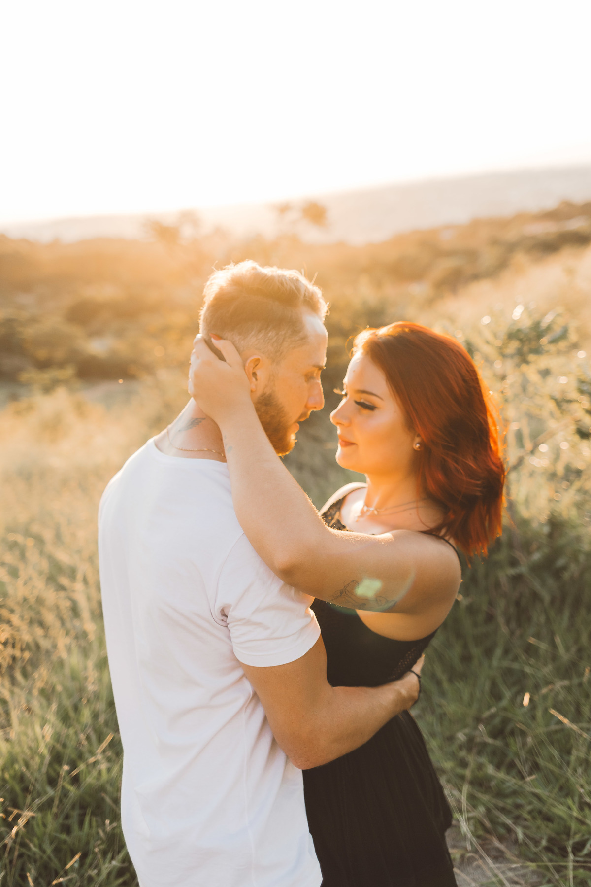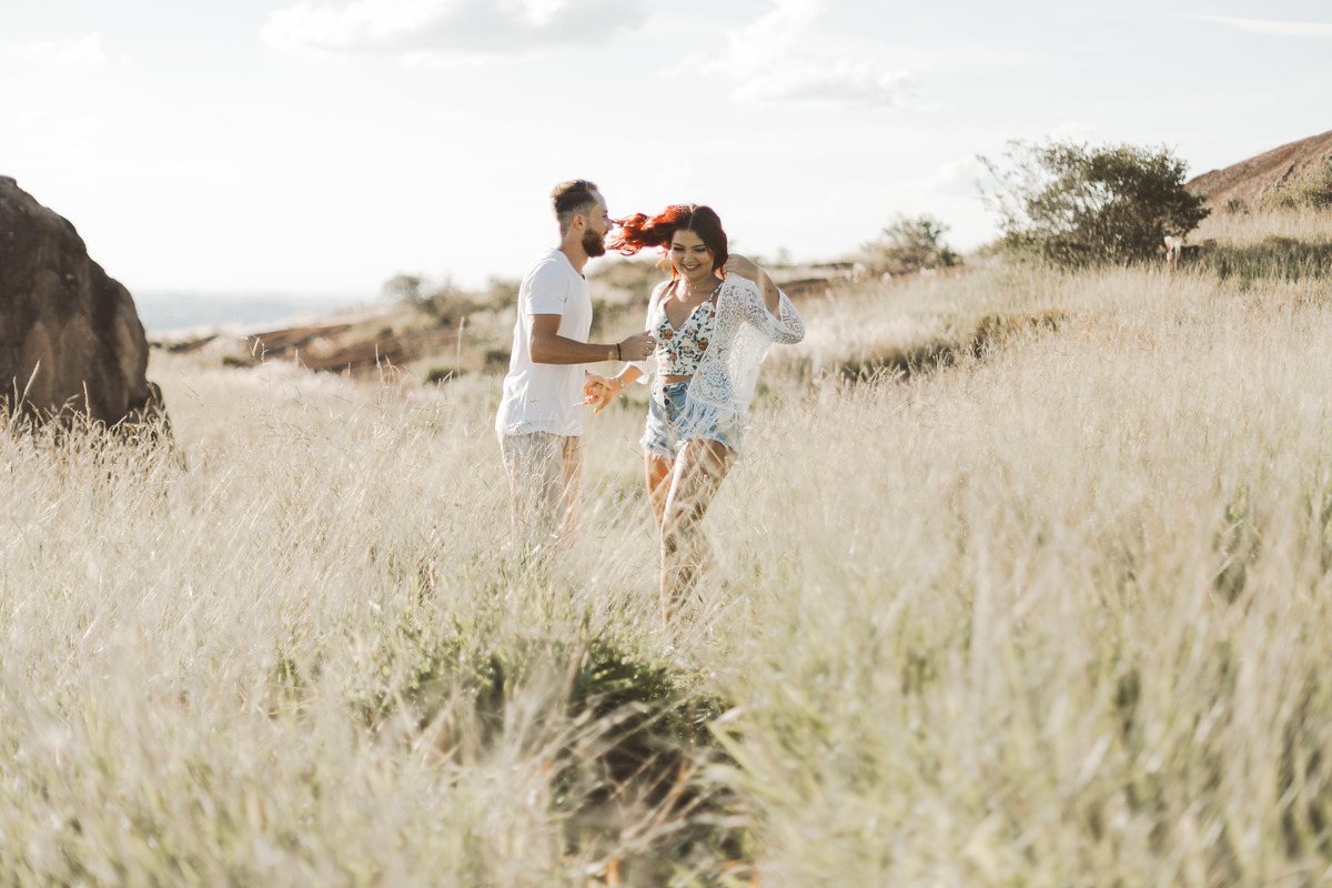 Fazia muito tempo, que não pegávamos um por do sol assim! Sempre fotografamos no mesmo horário, próximo das 17:00 horas, mas normalmente o tempo fica entre nublado e literalmente chovendo (hahaha)! Dessa vez ele veio, mas veio como um presente pra fechar esse ensaio, que foi SENSACIONAL DEMAIS! pasmados com o tamanho da conexão desse casal! Fora que eles estavam tão empolgados com a ideia de serem fotografados, que até ensaiaram algumas poses de referências do Pinterest. Aline, Ti, muuuito obrigada por toparem nossas ideias e se entregarem de cabeça nessa experiência! Já que você chegou até o final dessa legenda, então aproveita nossa condição pra ensaio também ;)