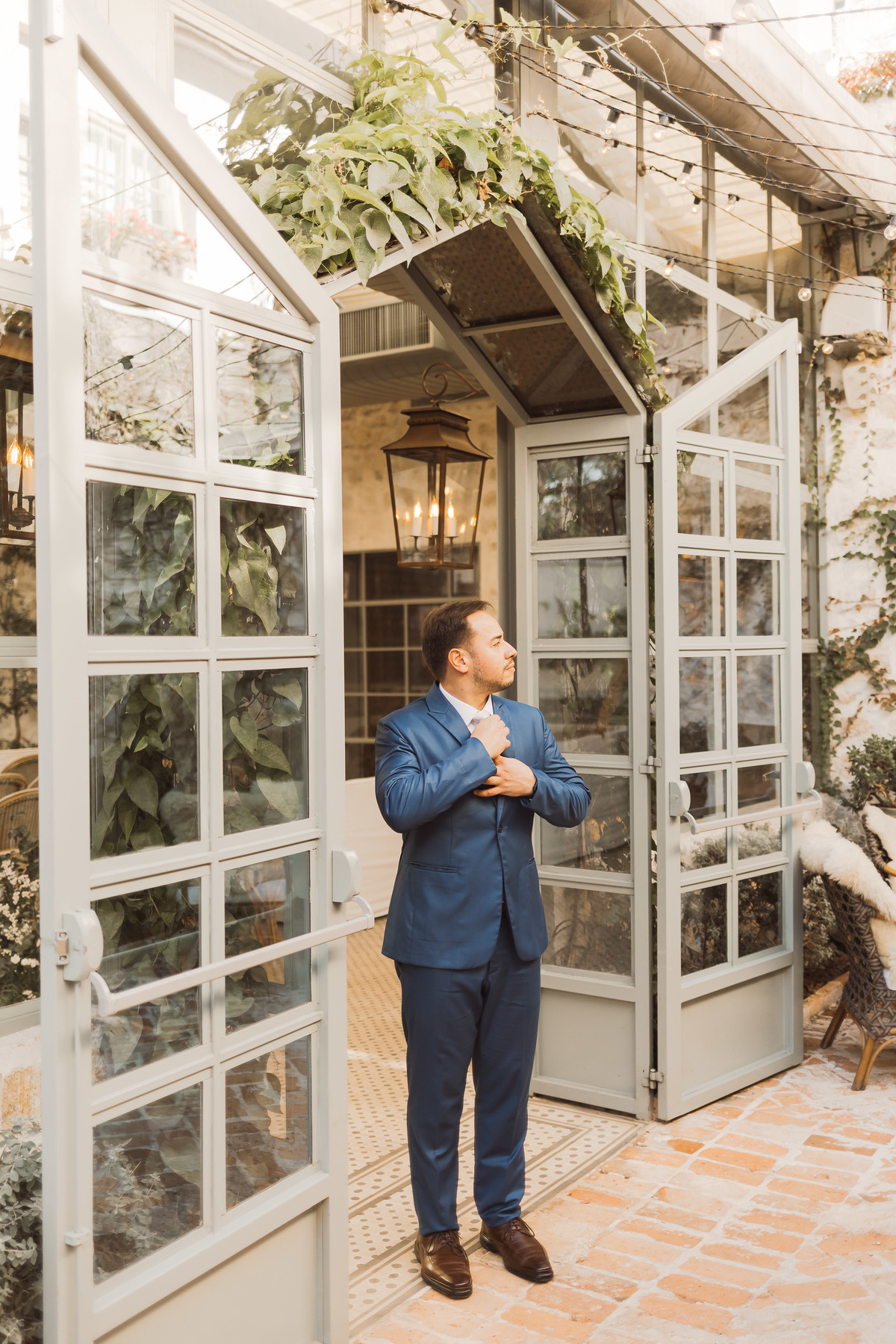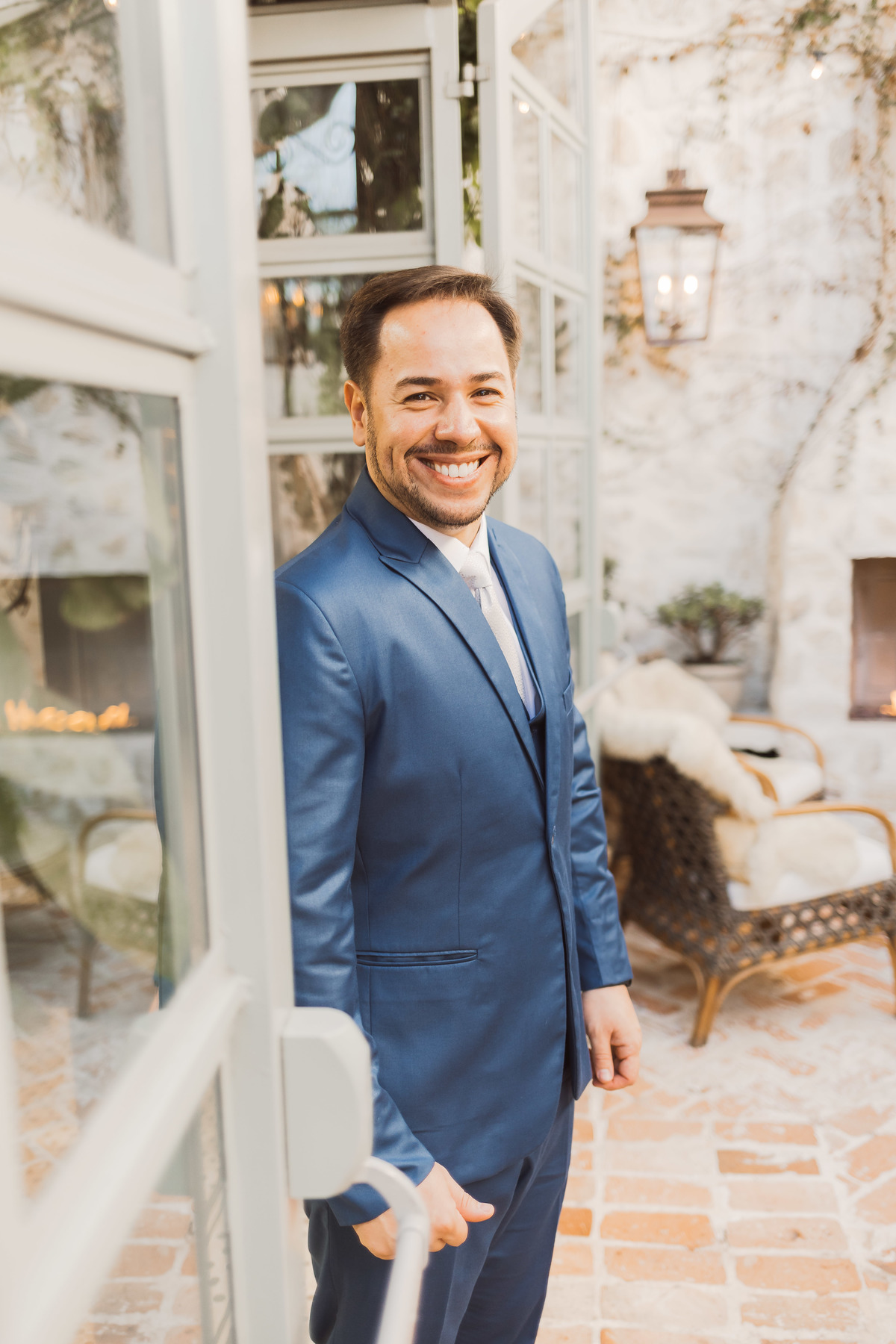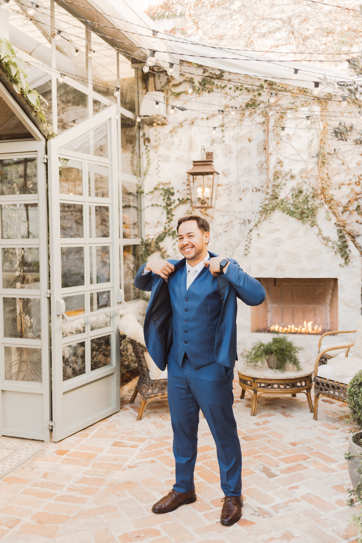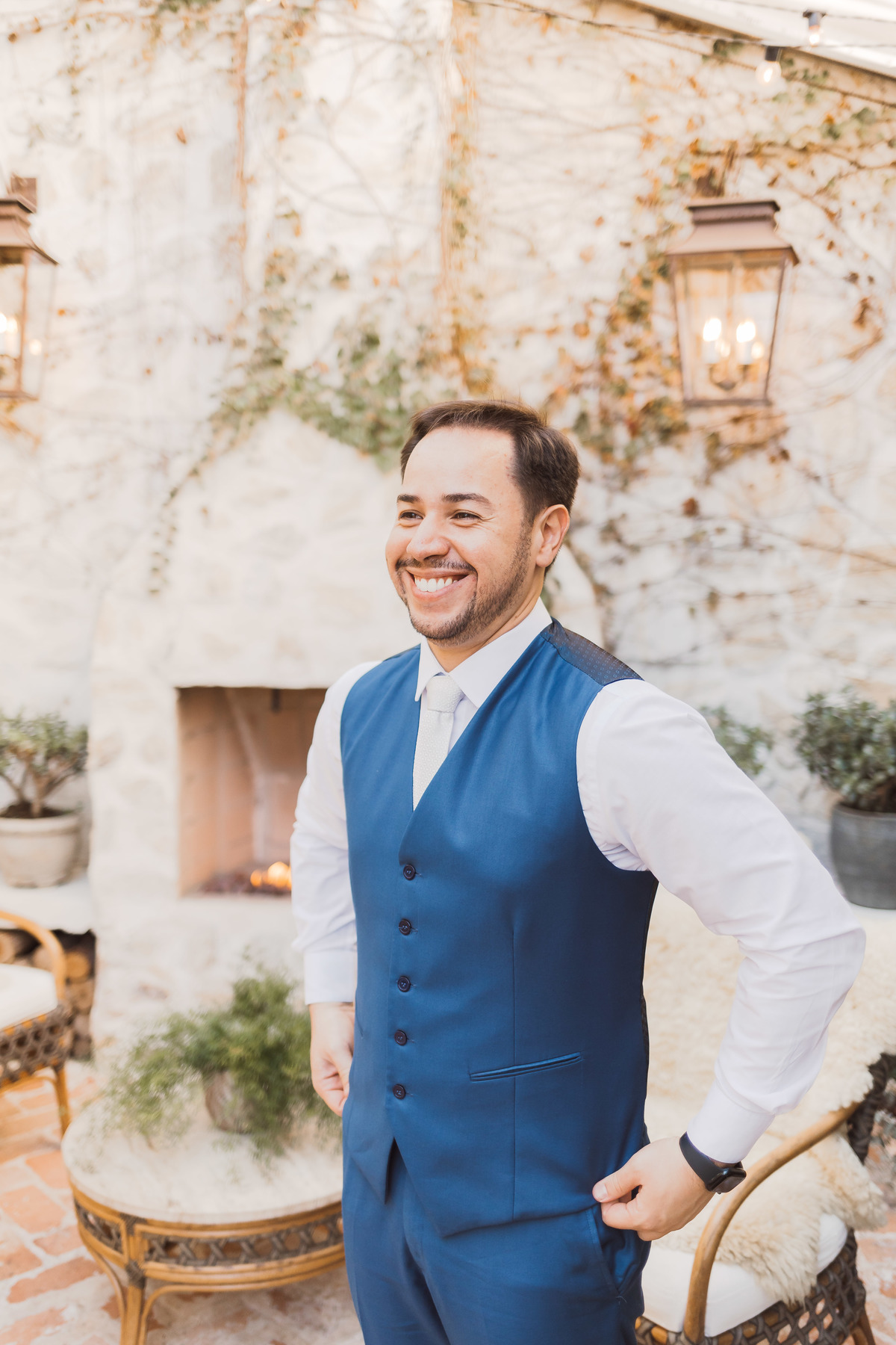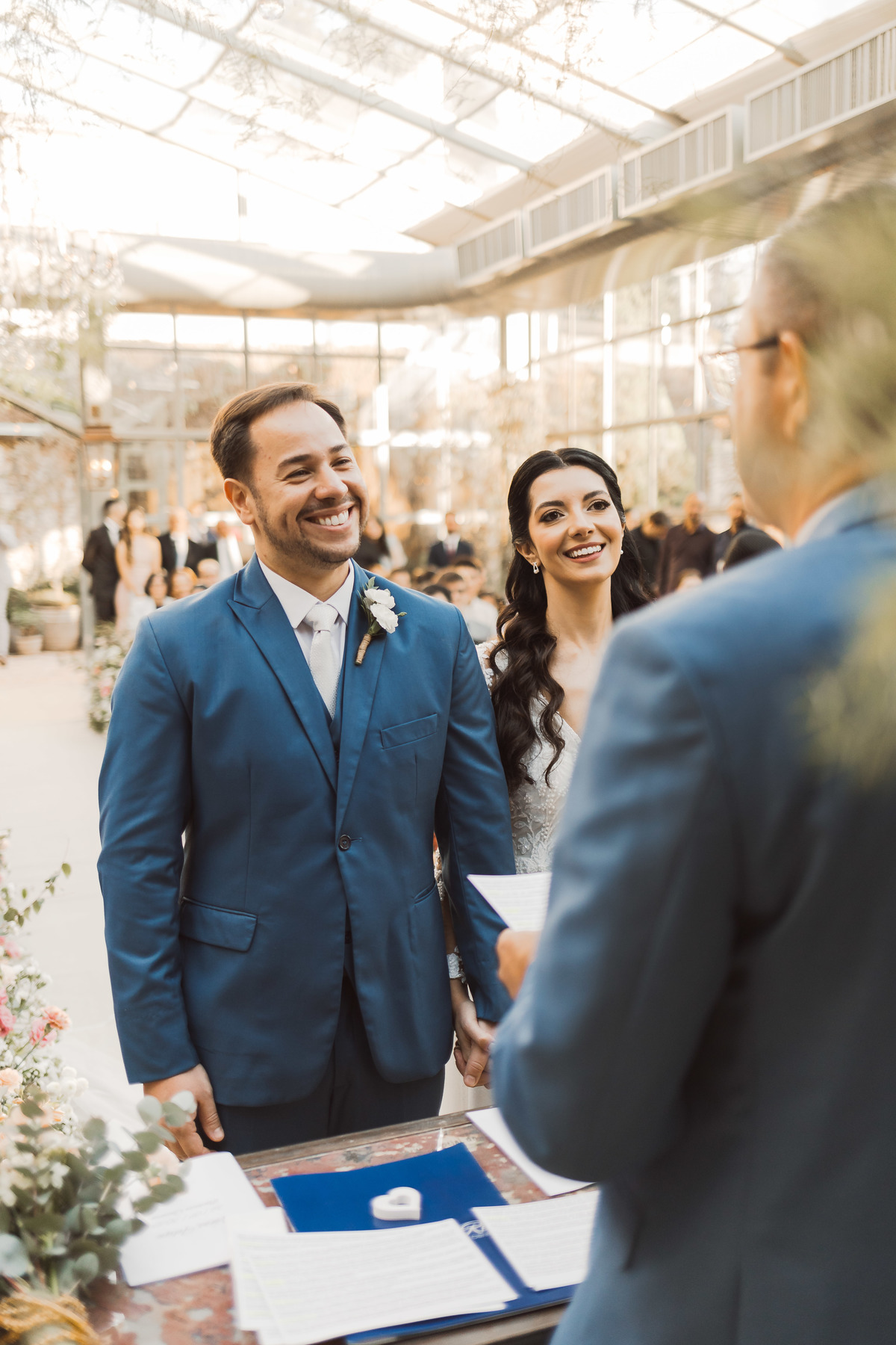 O Fábio chegou mais cedo no espaço pra aproveitar a beleza desse lugar e fazermos alguns retratos de noivo dele - registrar cada detalhe do noivo também é importante pra gente! Ele estava com o coração a mil, e ficou ainda mais ansioso quando os convidados começaram a chegar.