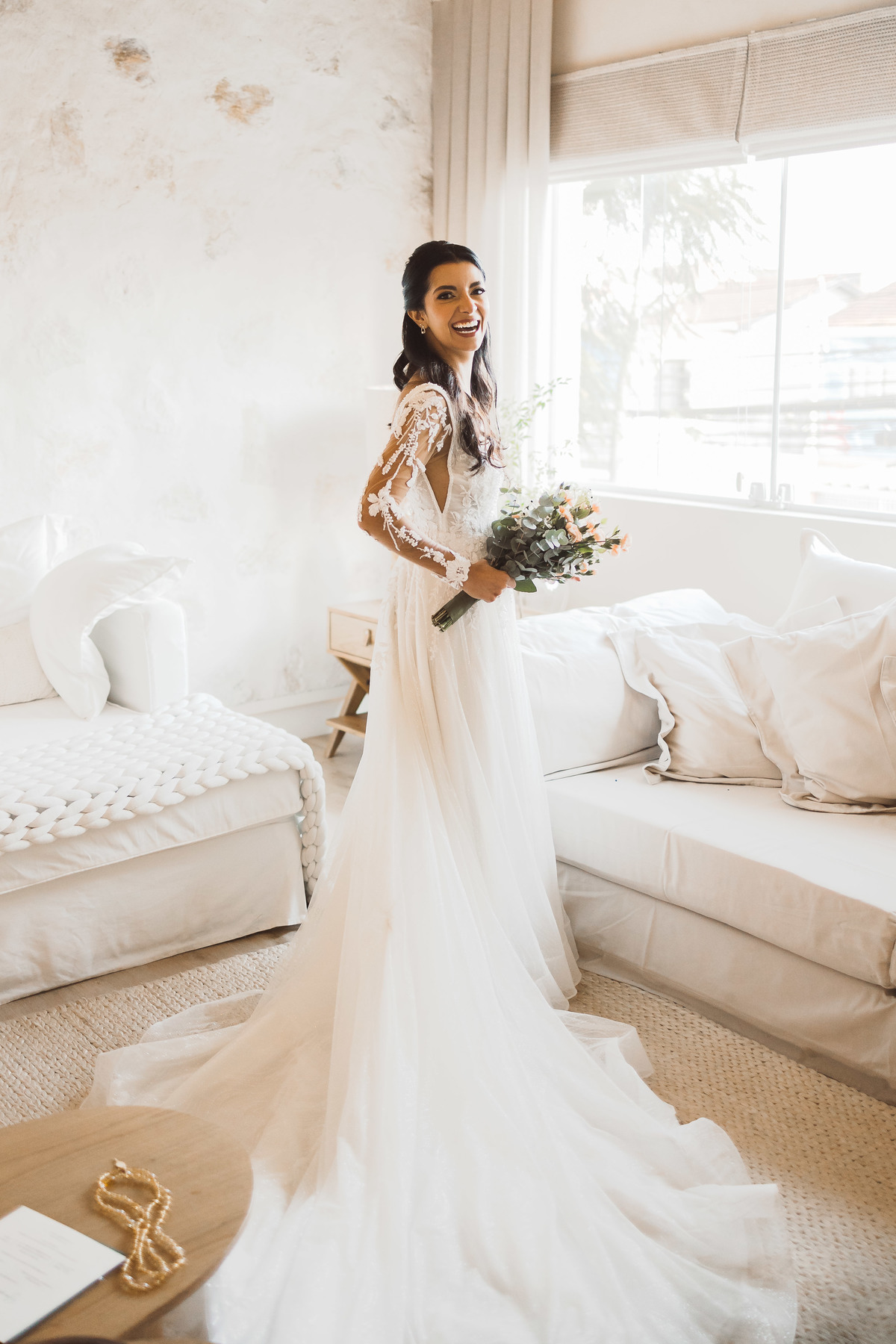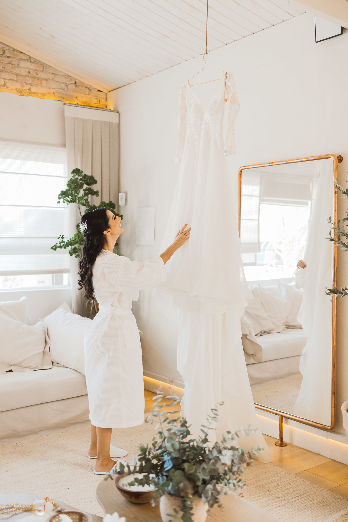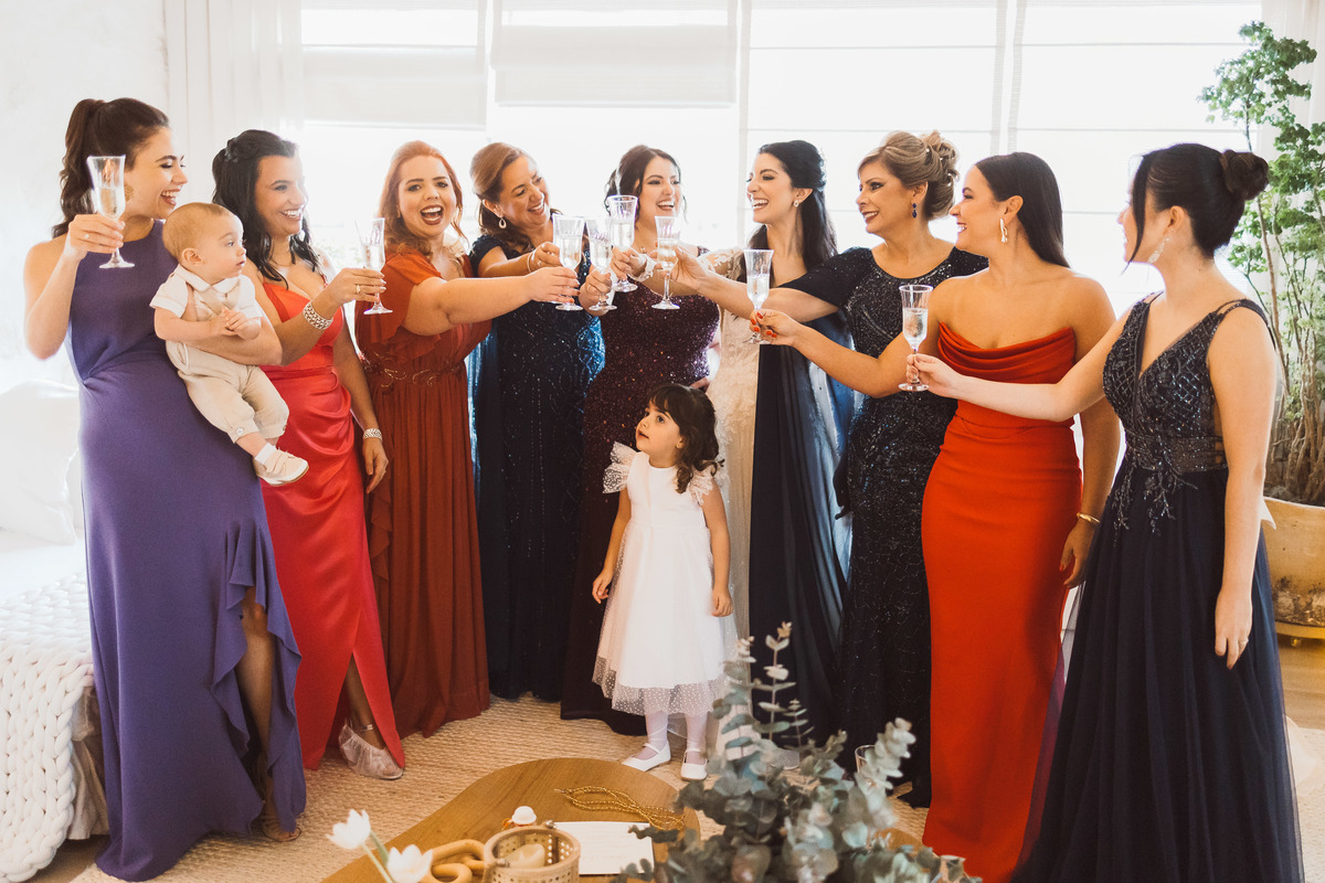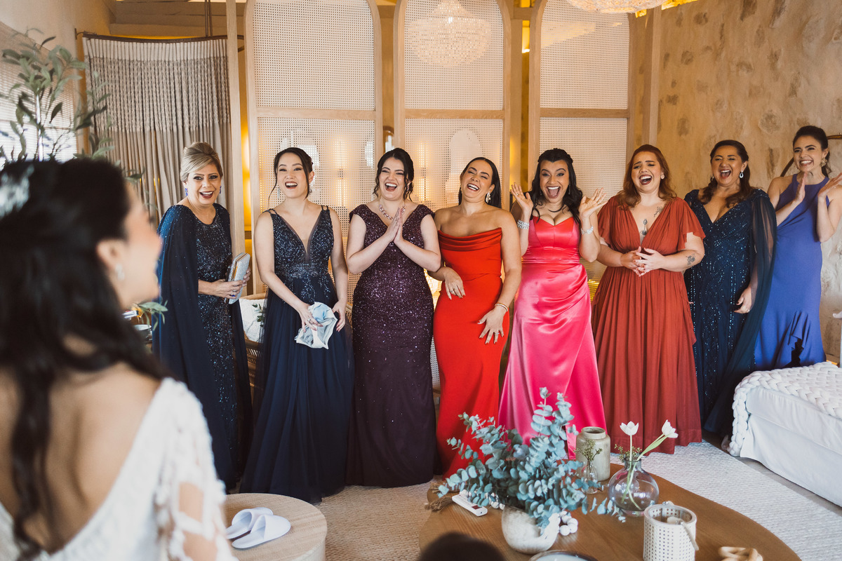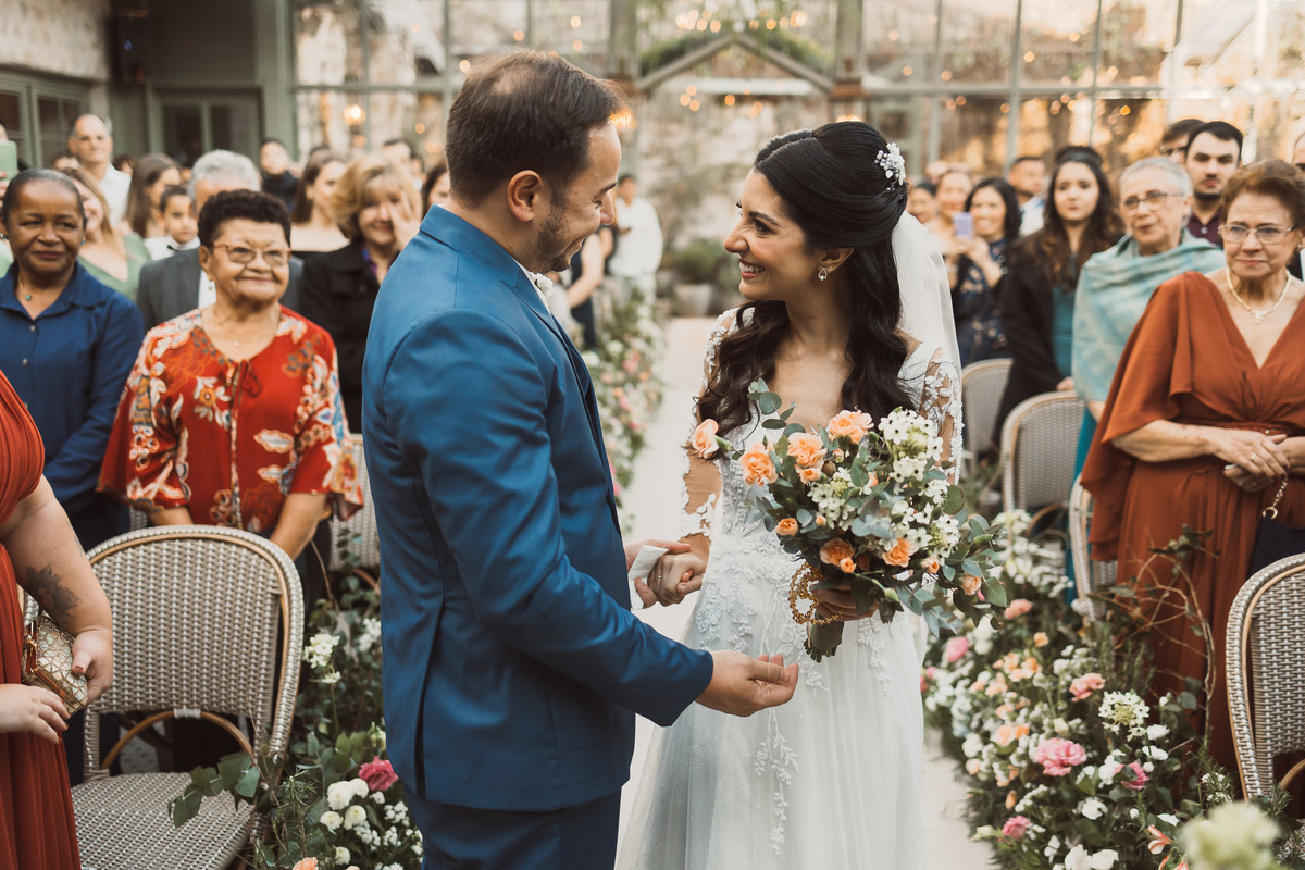 Esse foi um daqueles dias memoráveis, que começou cedo, com Yasmin se arrumando e tendo seu making of de noiva no local do casamento - eles escolheram o Espaço Botânico Quintal, que fica em São Paulo. Ela ficou pronta cedo então pôde aproveitar esse momento com leveza e ainda fazer um first look com as madrinhas minutos antes da cerimônia começar.