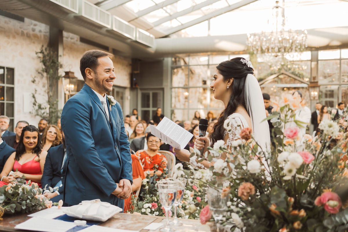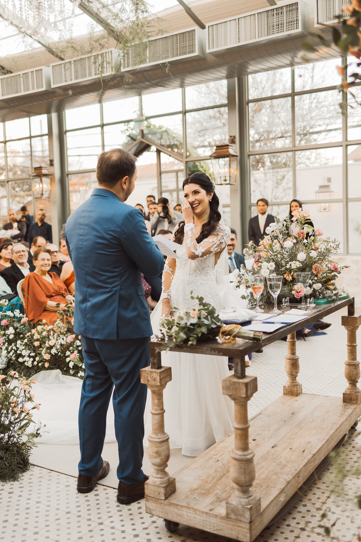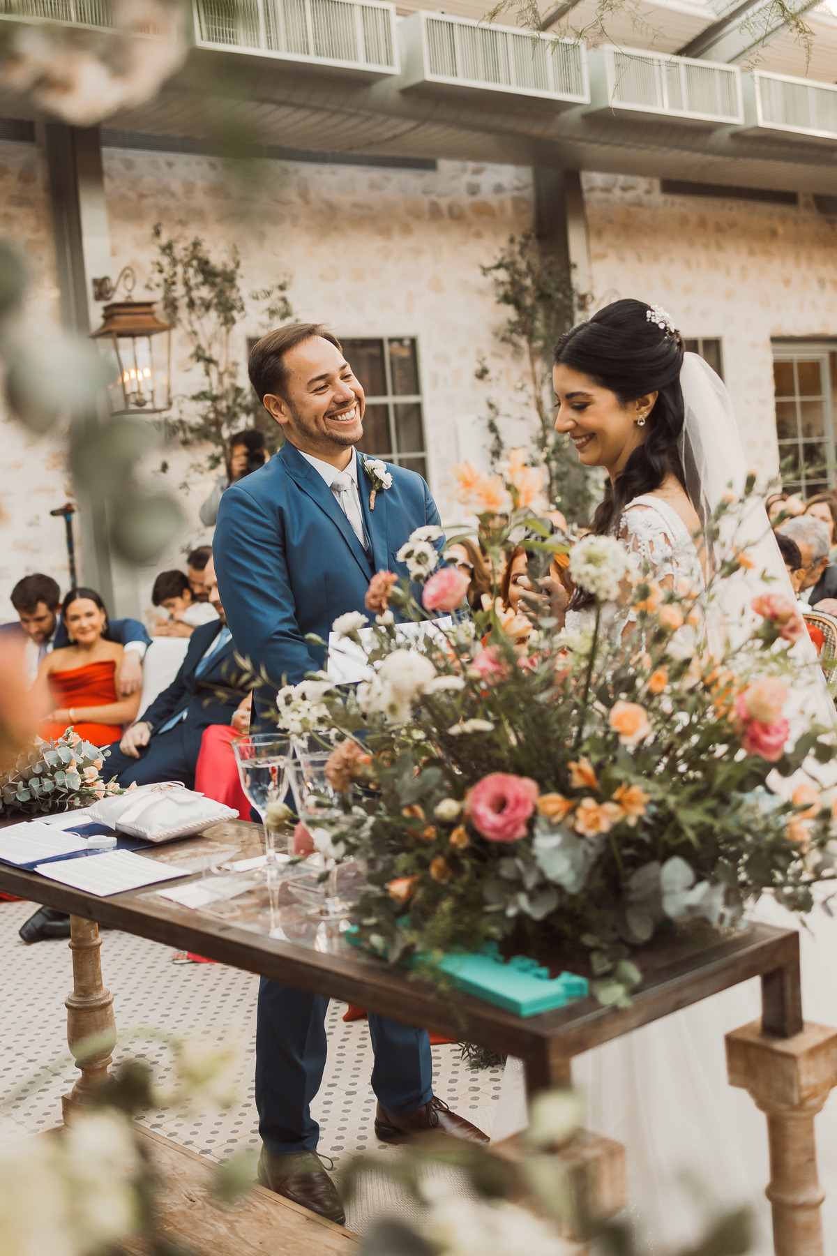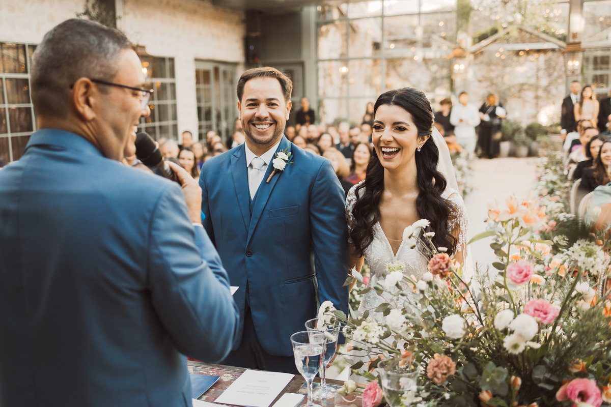 Depois os dois se encontraram no lugar mais esperado por eles - no altar! Foi uma cerimônia de casamento ao ar livre emocionante, cheia de reações, risadas e lágrimas. Eles trocaram votos de casamento, e depois disseram o “sim” mais lindo da vida!