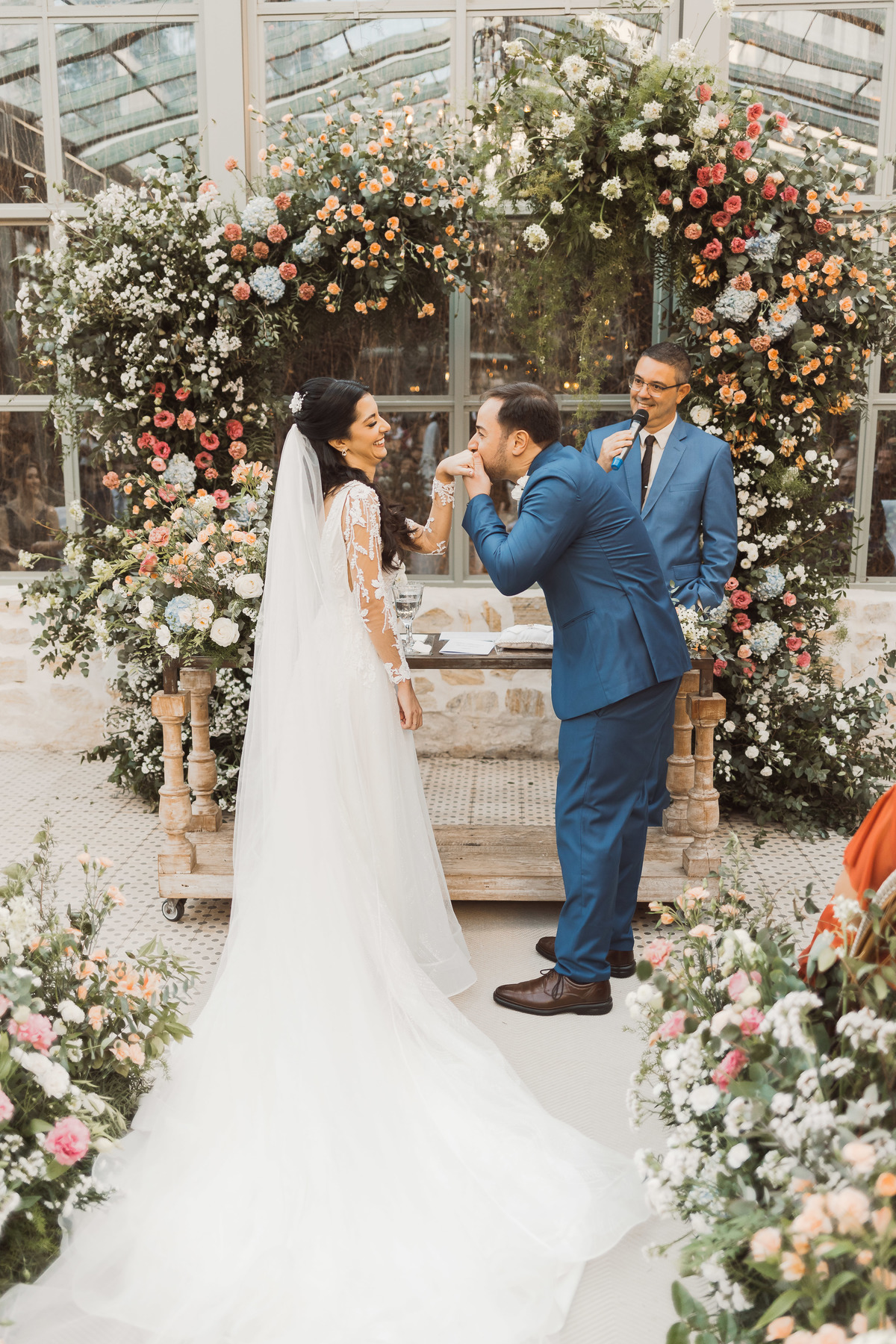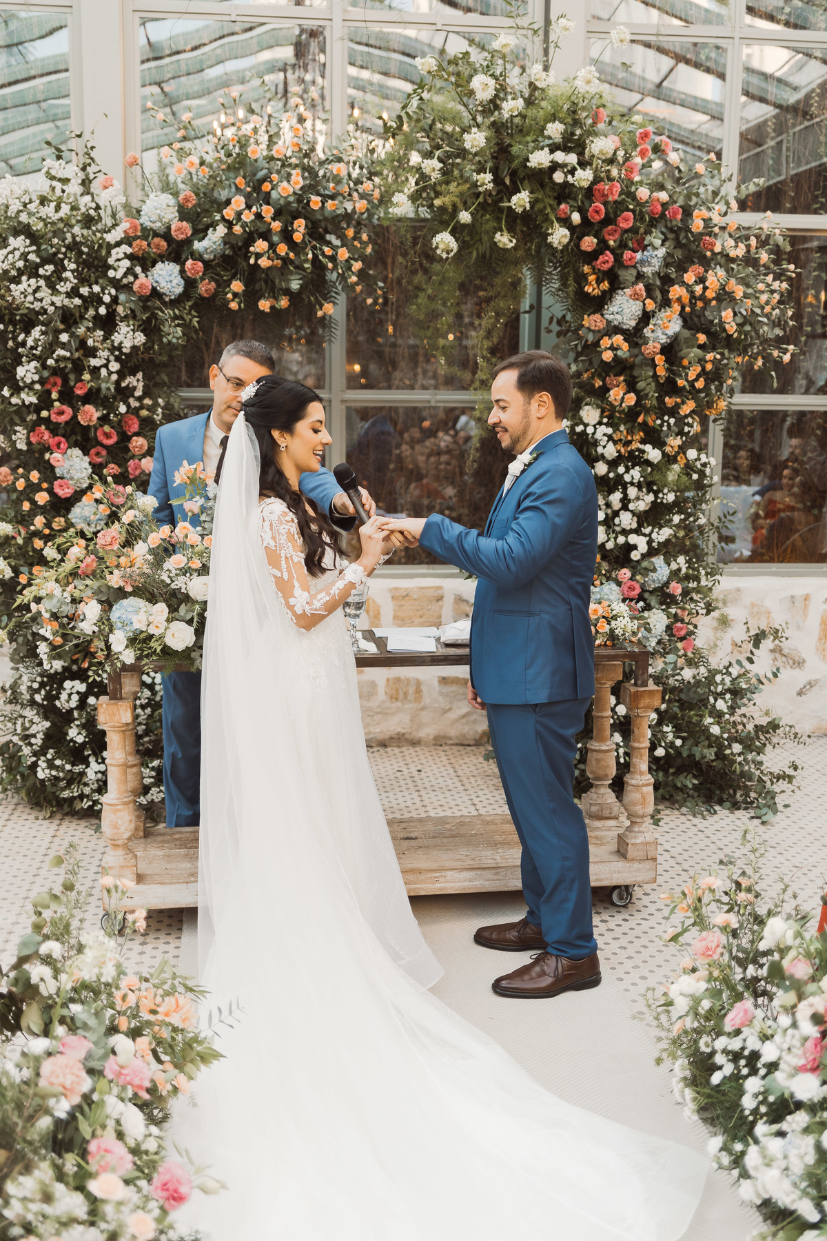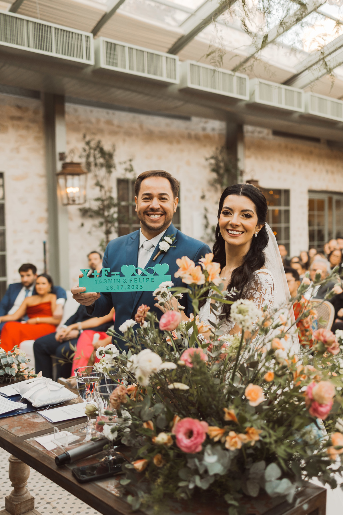 Depois os dois se encontraram no lugar mais esperado por eles - no altar! Foi uma cerimônia de casamento ao ar livre emocionante, cheia de reações, risadas e lágrimas. Eles trocaram votos de casamento, e depois disseram o “sim” mais lindo da vida!