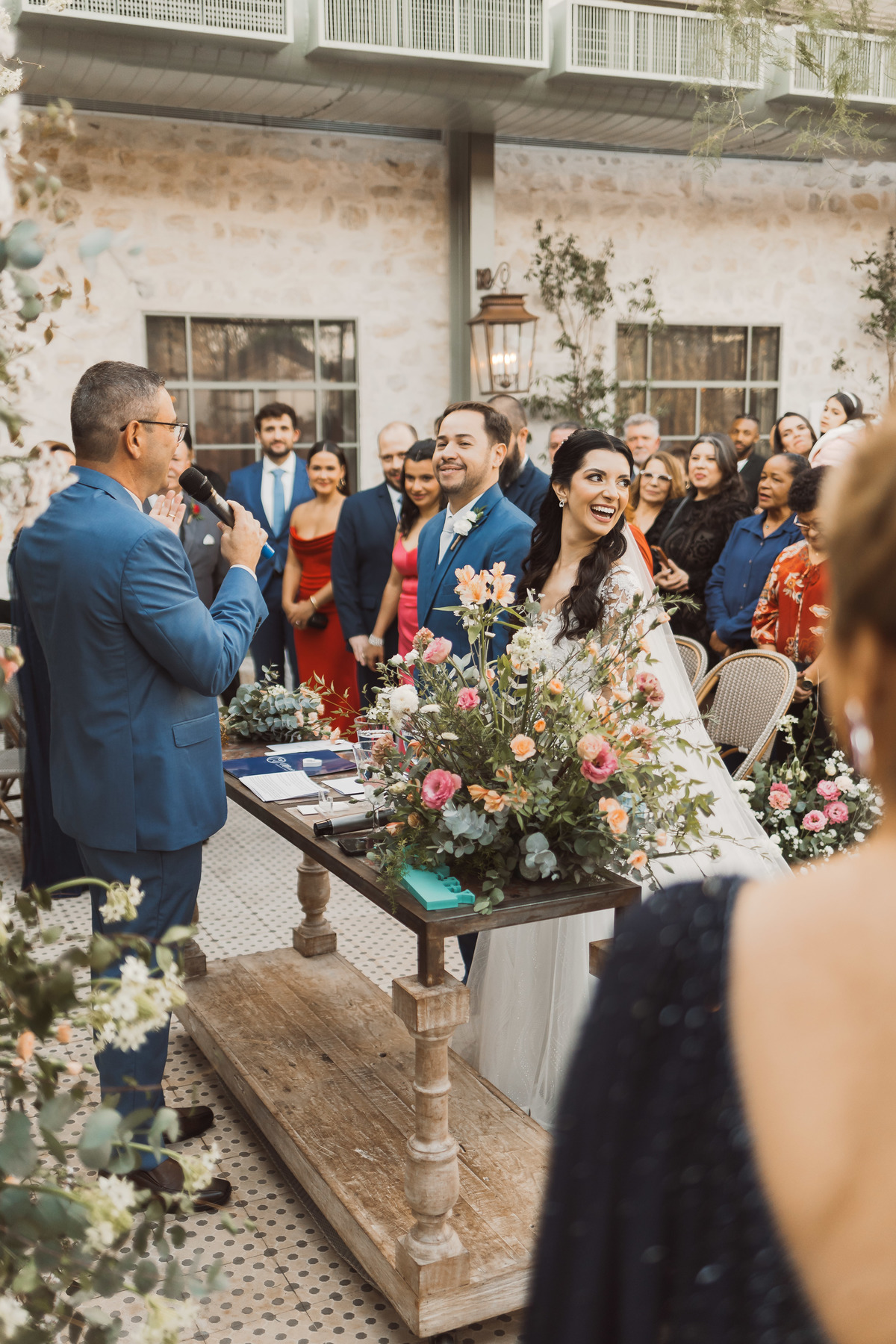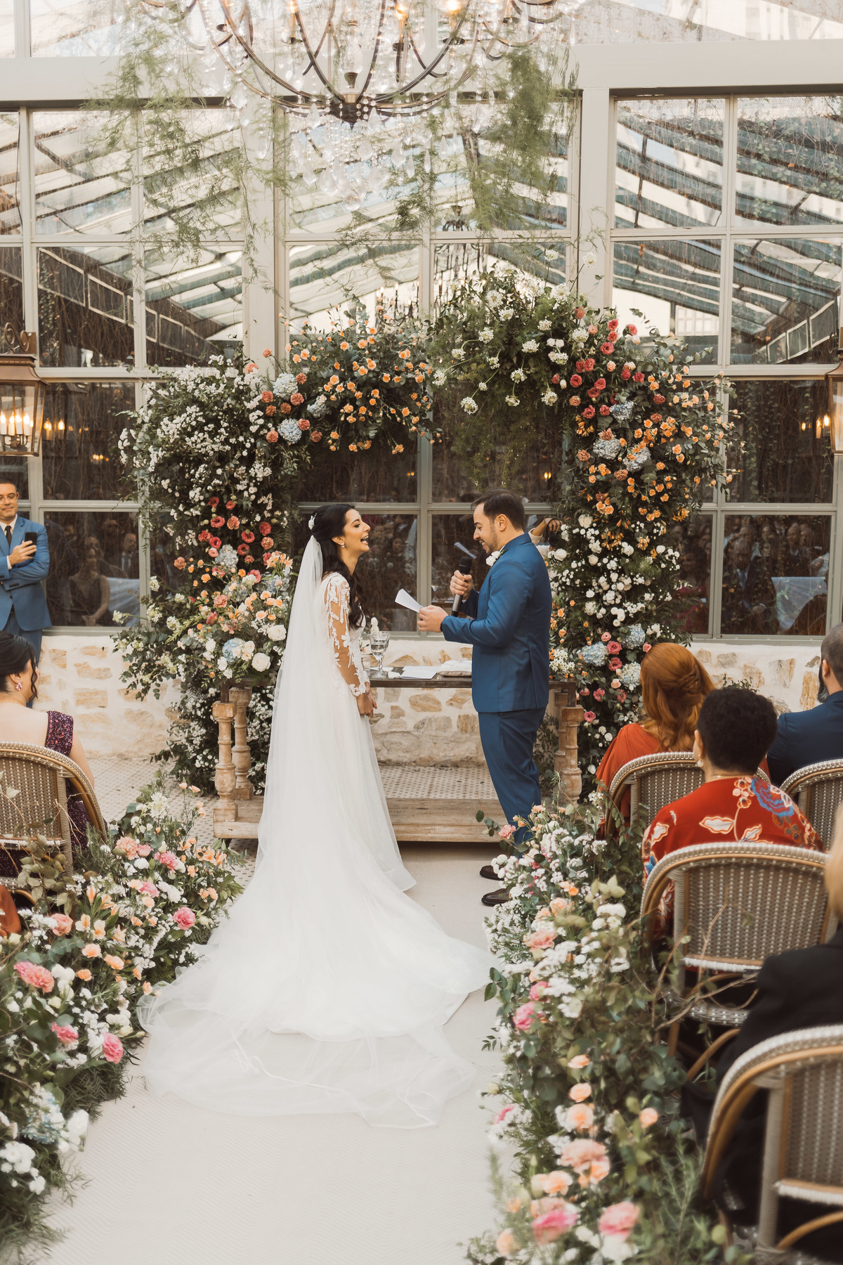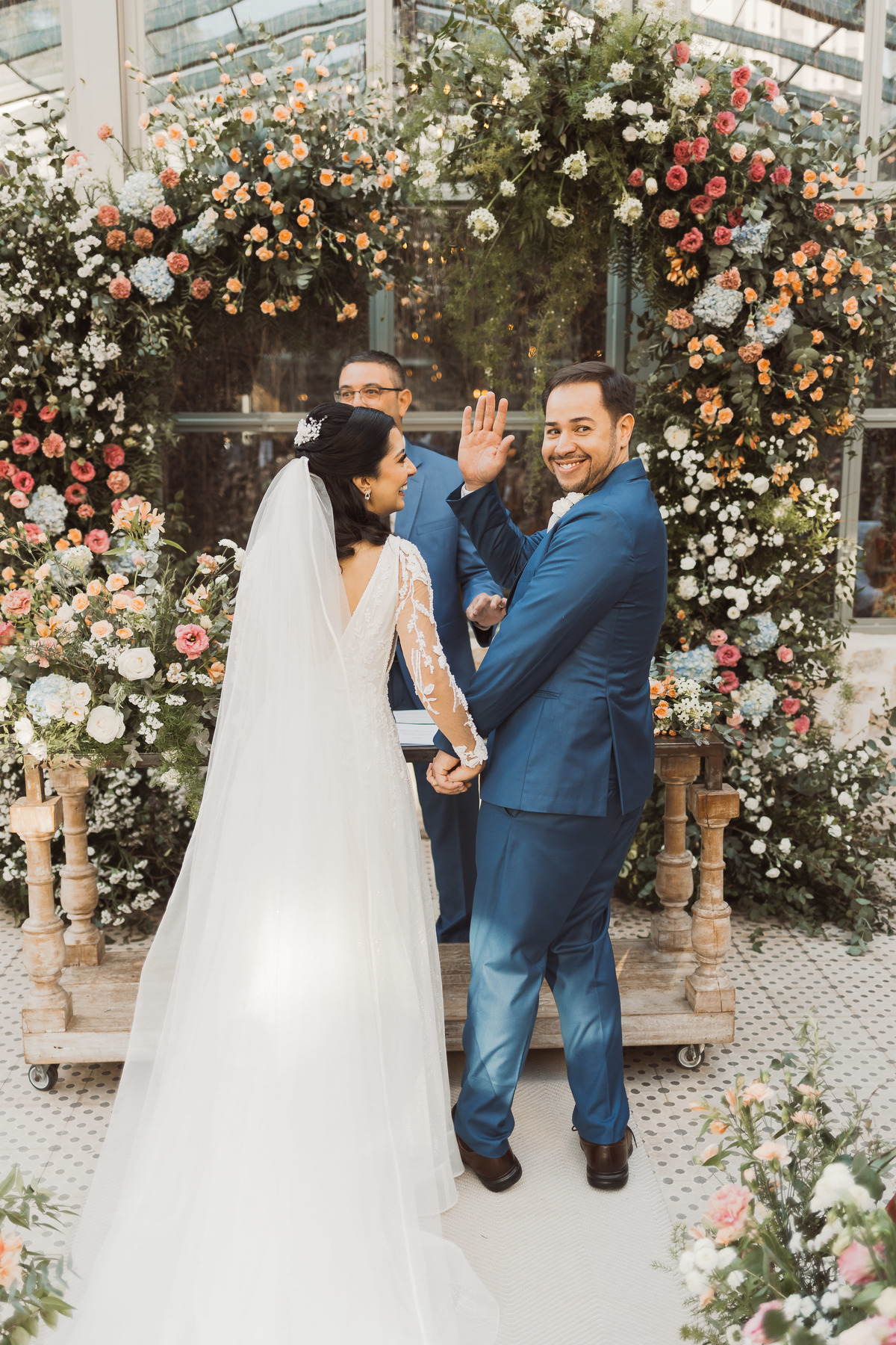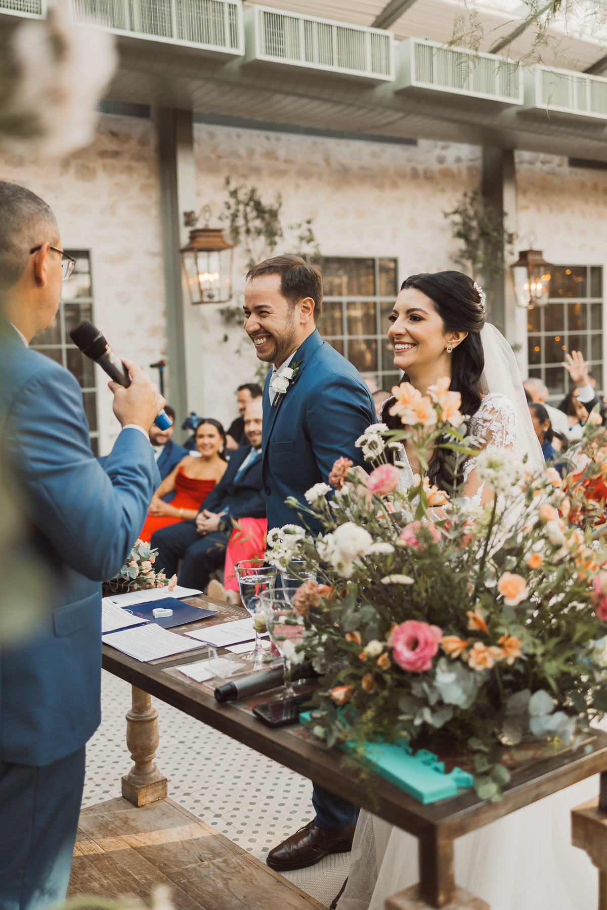 Depois os dois se encontraram no lugar mais esperado por eles - no altar! Foi uma cerimônia de casamento ao ar livre emocionante, cheia de reações, risadas e lágrimas. Eles trocaram votos de casamento, e depois disseram o “sim” mais lindo da vida!