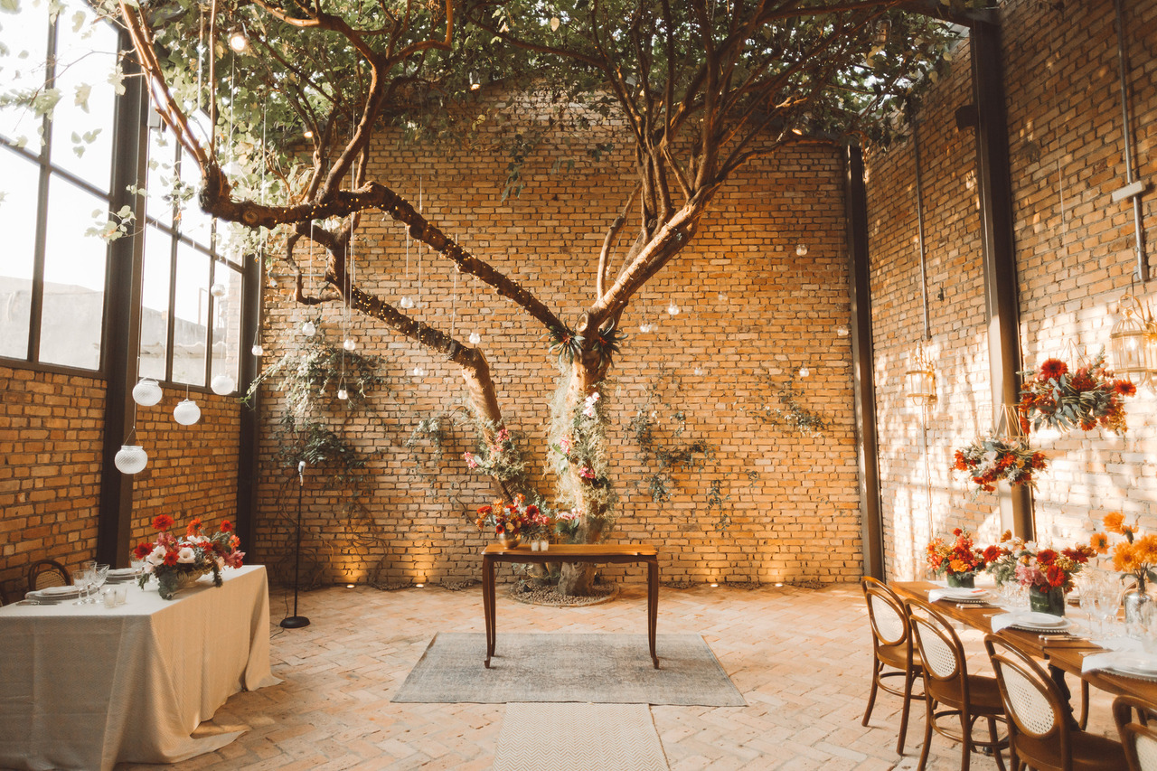 A cerimônia também ganha mais de uma possibilidade, podendo ser tanto no espaço interno do Palacete (no caso de uma cerimônia intimista) quanto no campo aberto, em frente a uma Figueira Velha de cair o queixo (se você quer ver um pouco mais desse lugar, vem comigo).