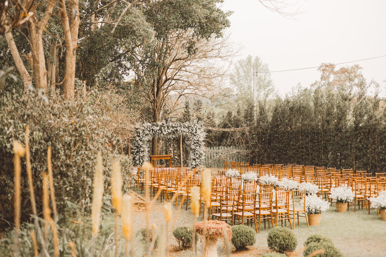 Na Fazenda Paraizo, a cerimônia acontece debaixo de uma árvore majestosa — e quando o sol começa a se pôr, o cenário ganha tons dourados que deixam tudo ainda mais inesquecível. Um lugar perfeito pra dizer ‘sim’ com natureza, leveza e sensibilidade.