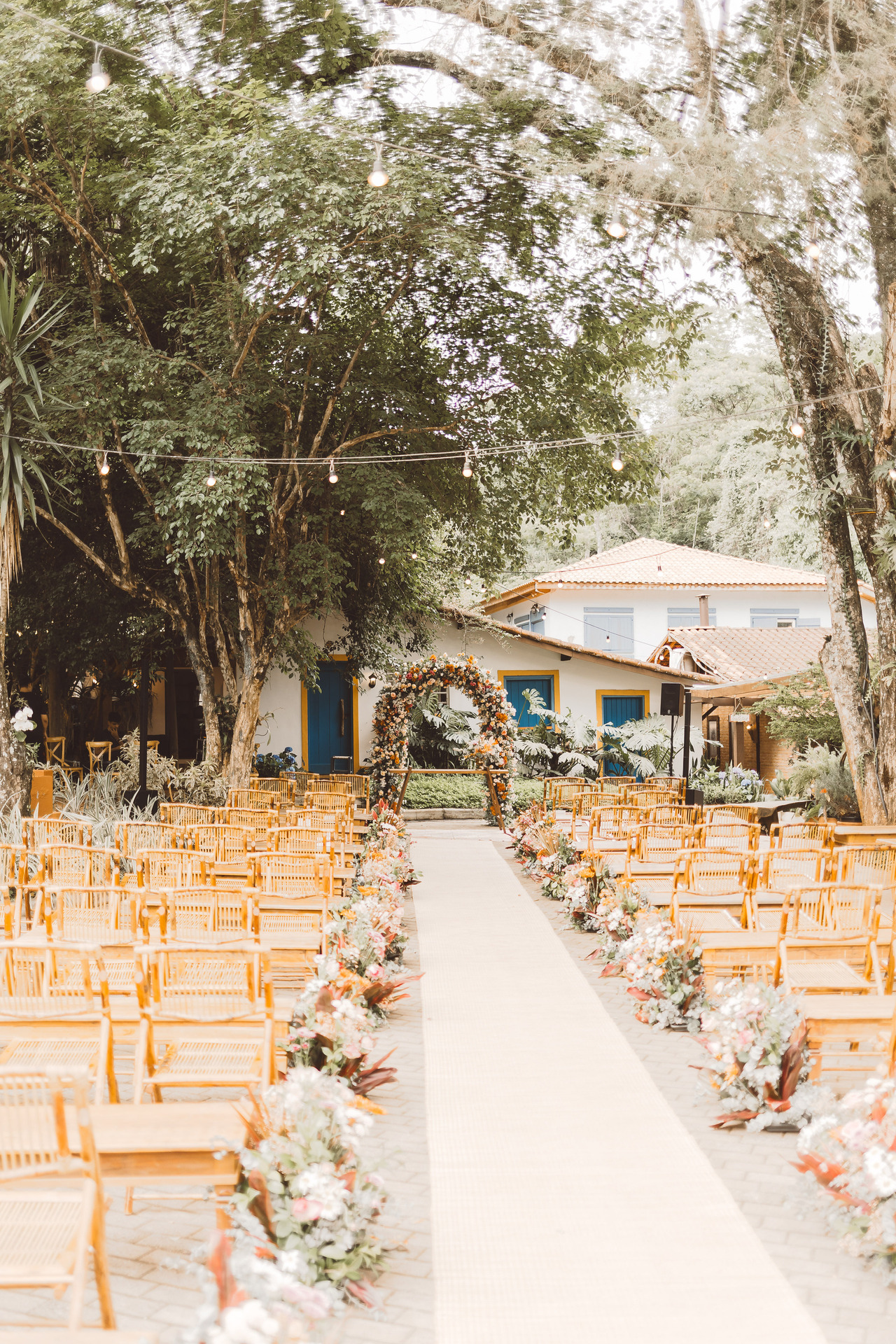 Com jardins abertos, luzes penduradas e clima de festa no campo, o Villa Mantova é cenário pronto pra quem quer um casamento leve, bonito e cheio de verdade.