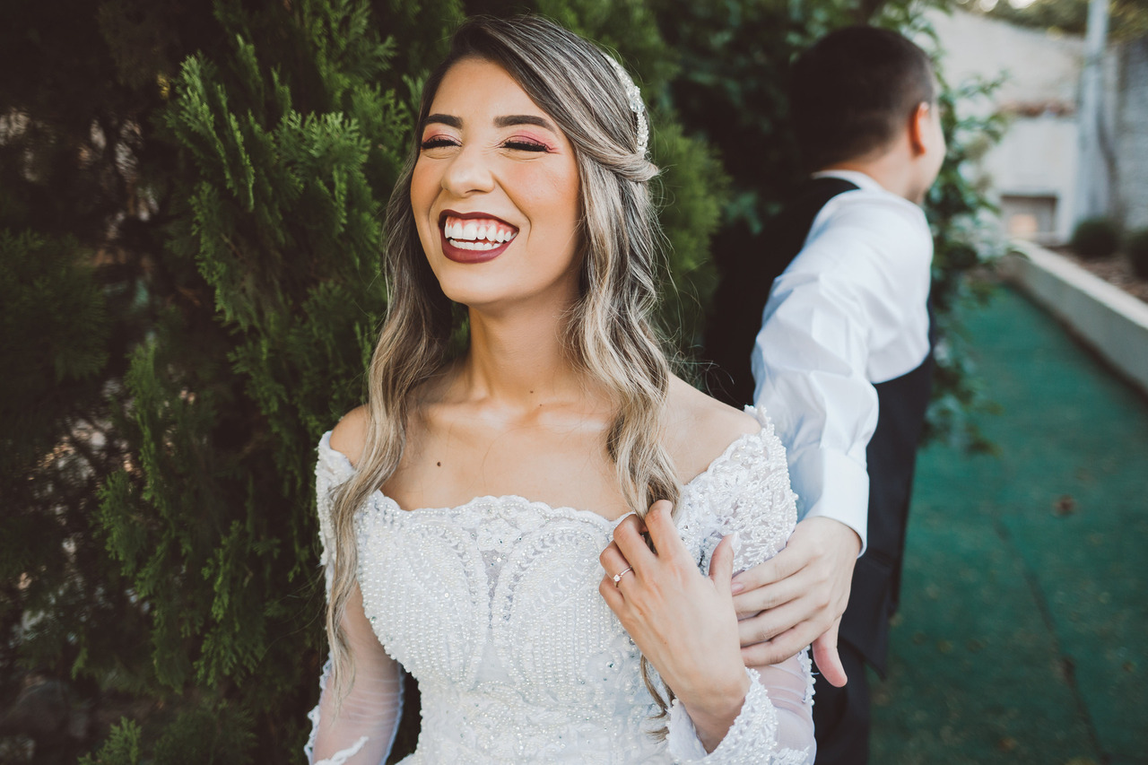 Bora começar com o momento do First Touch. Dá pra fazer, quando os noivos estão no mesmo lugar, momentos antes do casamento (o que não acontece quando a cerimônia é na igreja, por exemplo). Você vai precisar da ajuda do seu fotógrafo e também, da sua assessora e até as suas madrinhas podem ajudar.