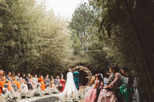 No caso da cerimônia de casamento ao ar livre, como normalmente é no mesmo lugar da festa, podemos aproveitar os cantinhos do próprio espaço para casamento, pra fazer o ensaio, enquanto seus convidados vão sendo acomodados nas mesas pela equipe de cerimonial de casamento.