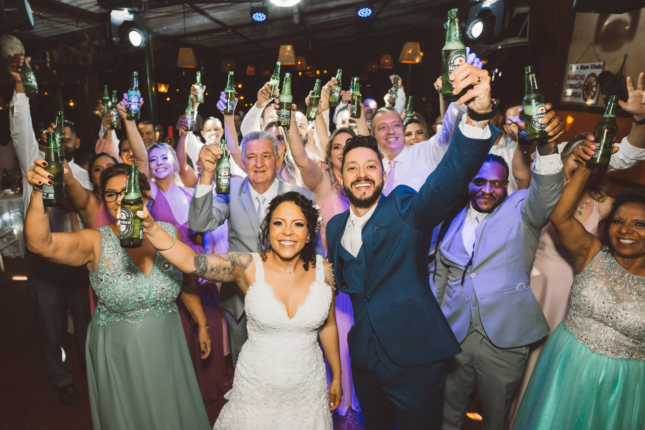 É o momento de vocês extravasarem toda a pressão que rolou desde o planejamento do casamento até o momento da cerimônia de casamento, e comemorar muito com as pessoas mais especiais da vida de vocês.